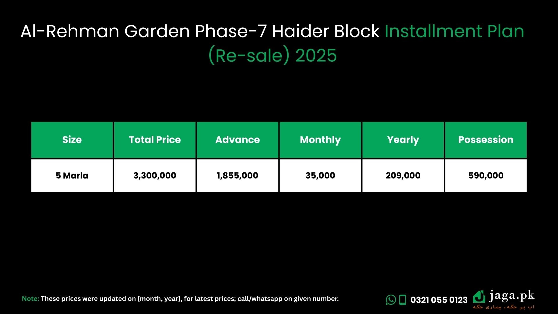 1. Al-Rehman Garden Phase-7 Haider Block Installment Plan (Re-sale) 2025-26