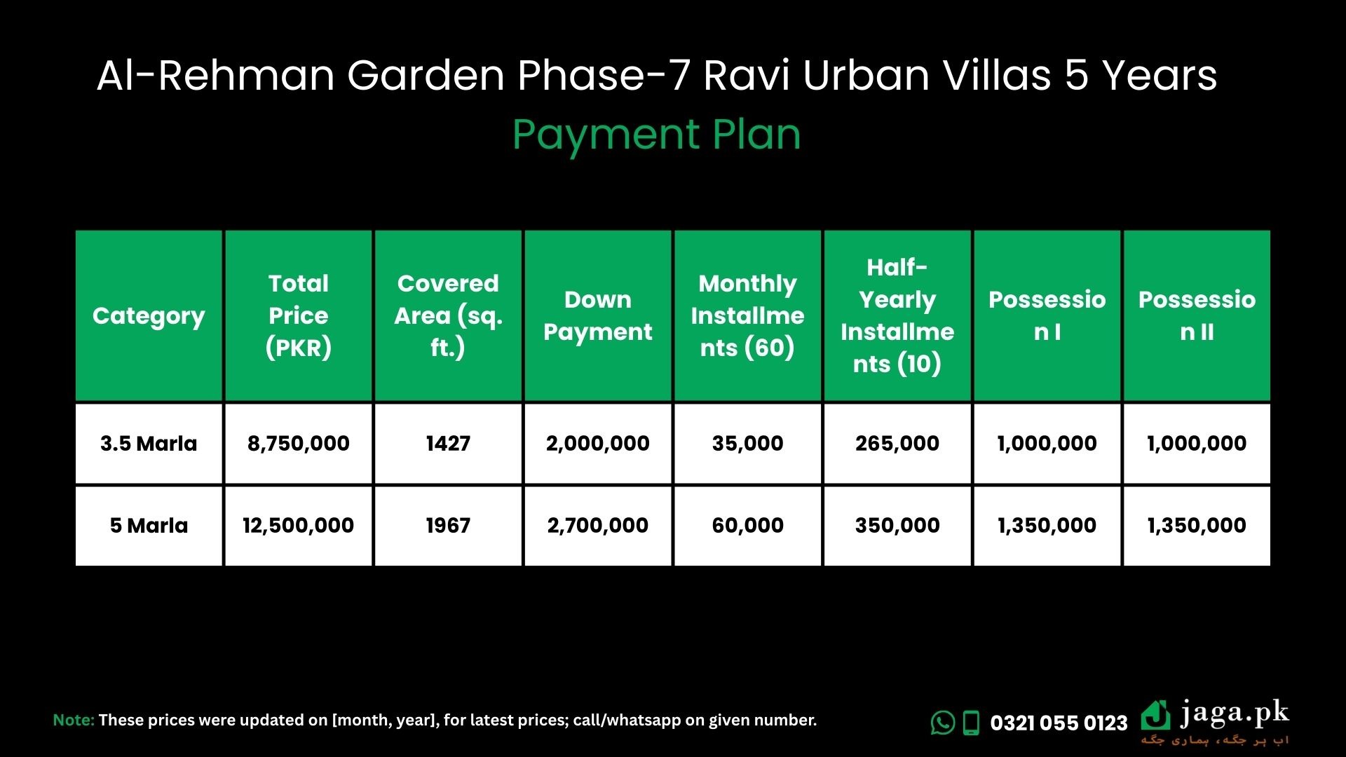2. Al-Rehman Garden Phase-7 Ravi Urban Villas 5 Years Payment Plan 2025-26