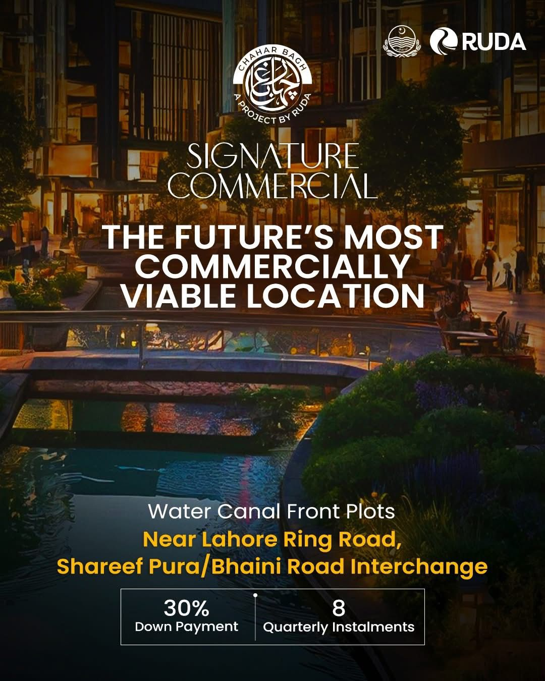 Launch your enterprise at the future’s most profitable address, Chahar Bagh Signature Commercial, strategically located on the Lahore Ring Road Water-Canal Front.
