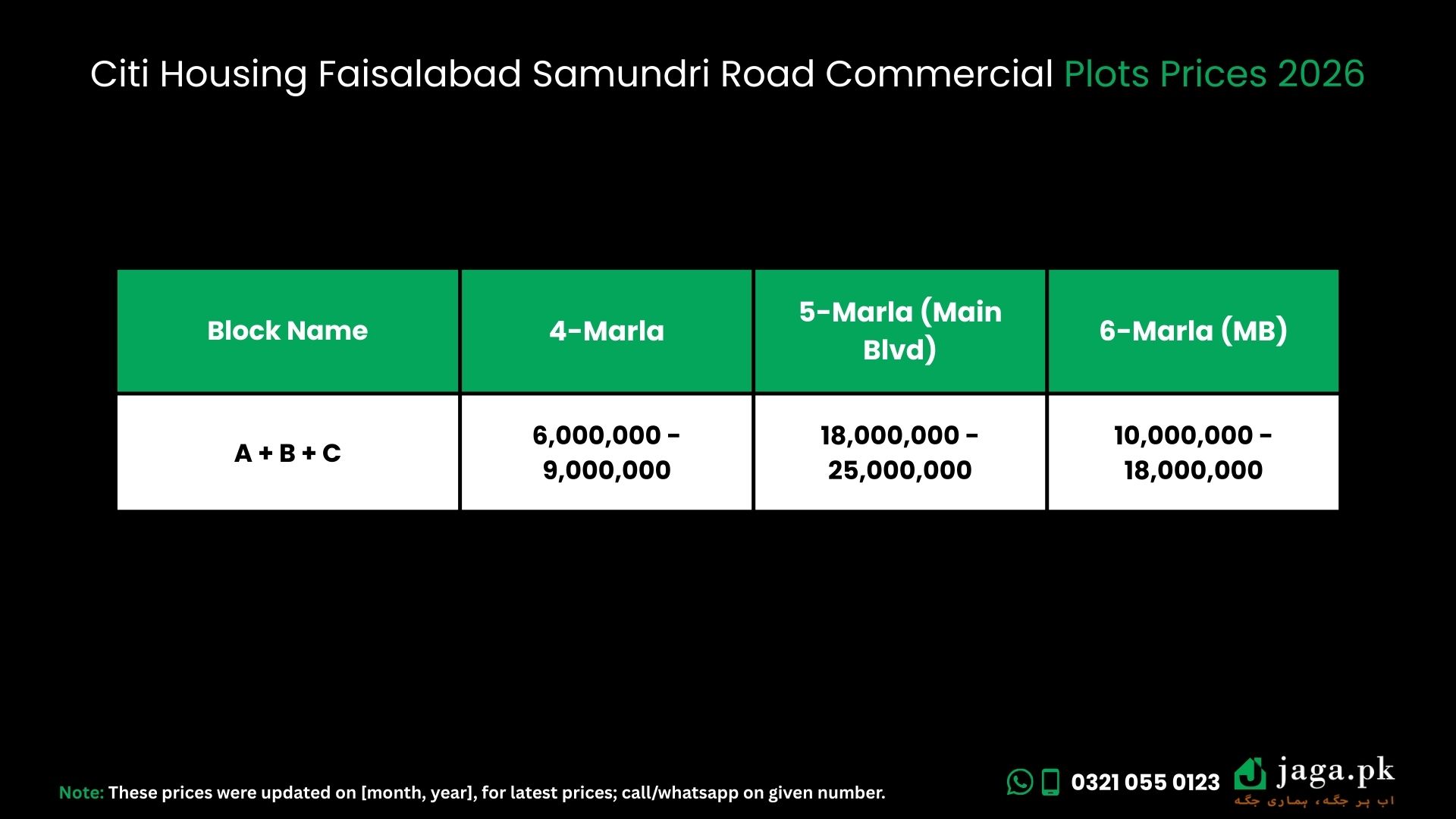 2. Citi Housing Faisalabad Samundri Road Commercial Plots Prices 2026