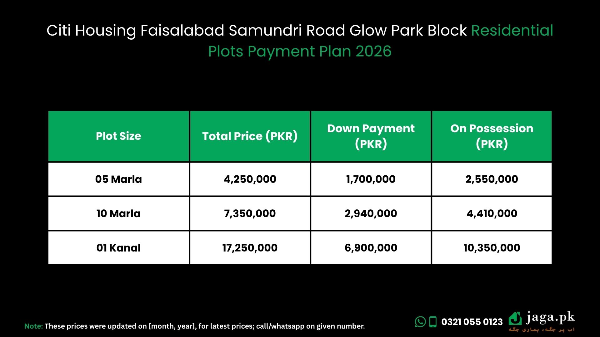 4. Citi Housing Faisalabad Samundri Road Glow Park Block Residential Installment Plan 2026