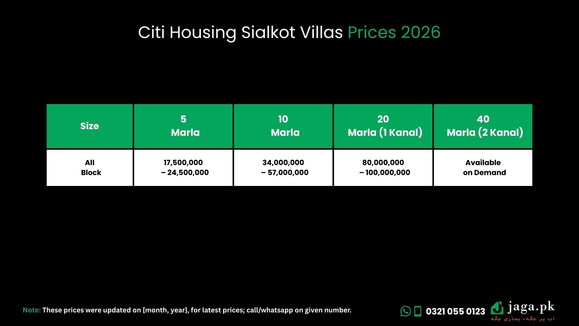 | 5 Marla Villa | 17,500,000 – 24,500,000 |