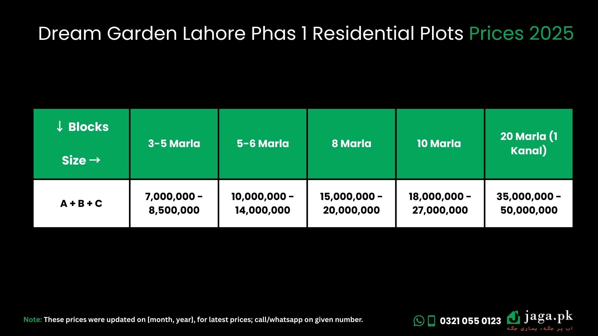 Dream Gardens Lahore Phase 1 Residential Plots Prices 2026