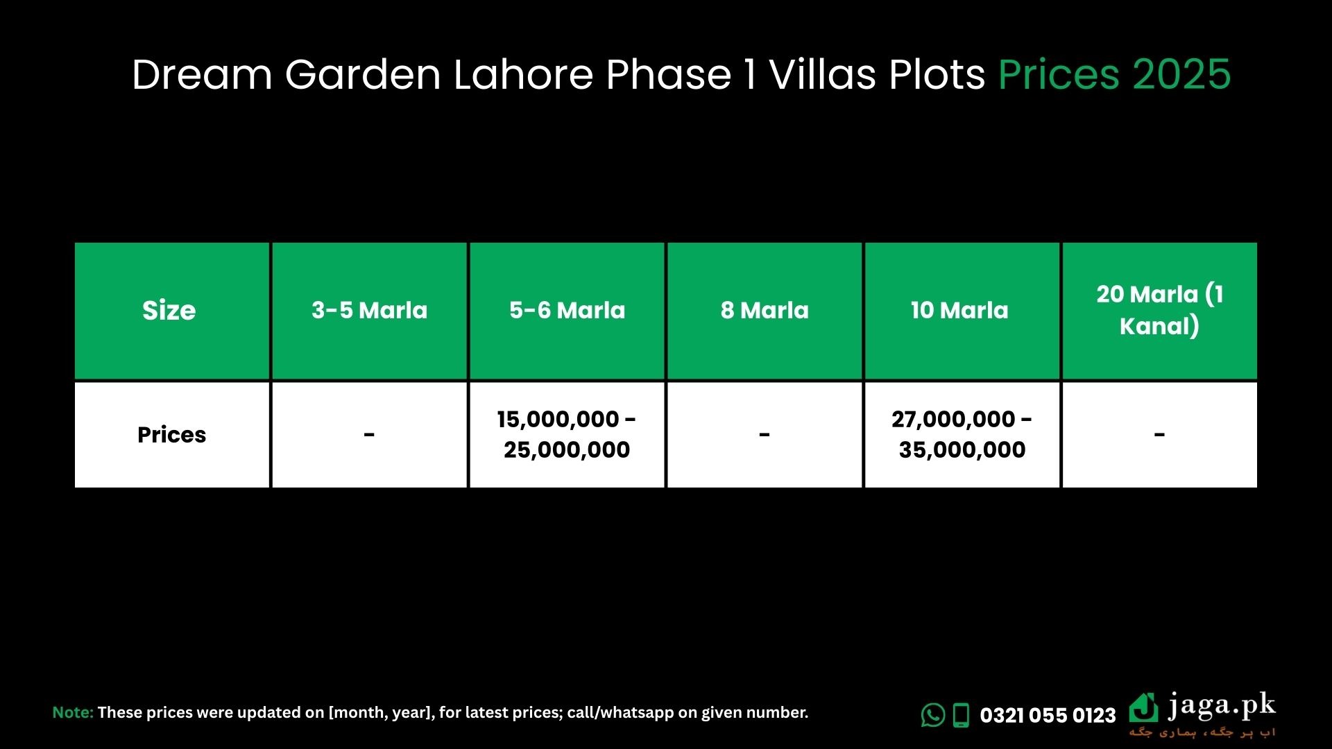 Dream Gardens Lahore Phase 1 Villas Plots Prices 2026