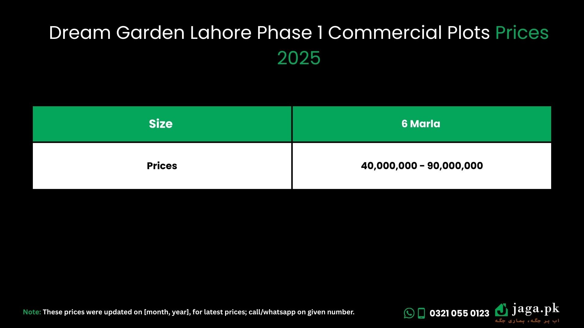Dream Gardens Lahore Phase 1 Commercial Plots Prices 2026