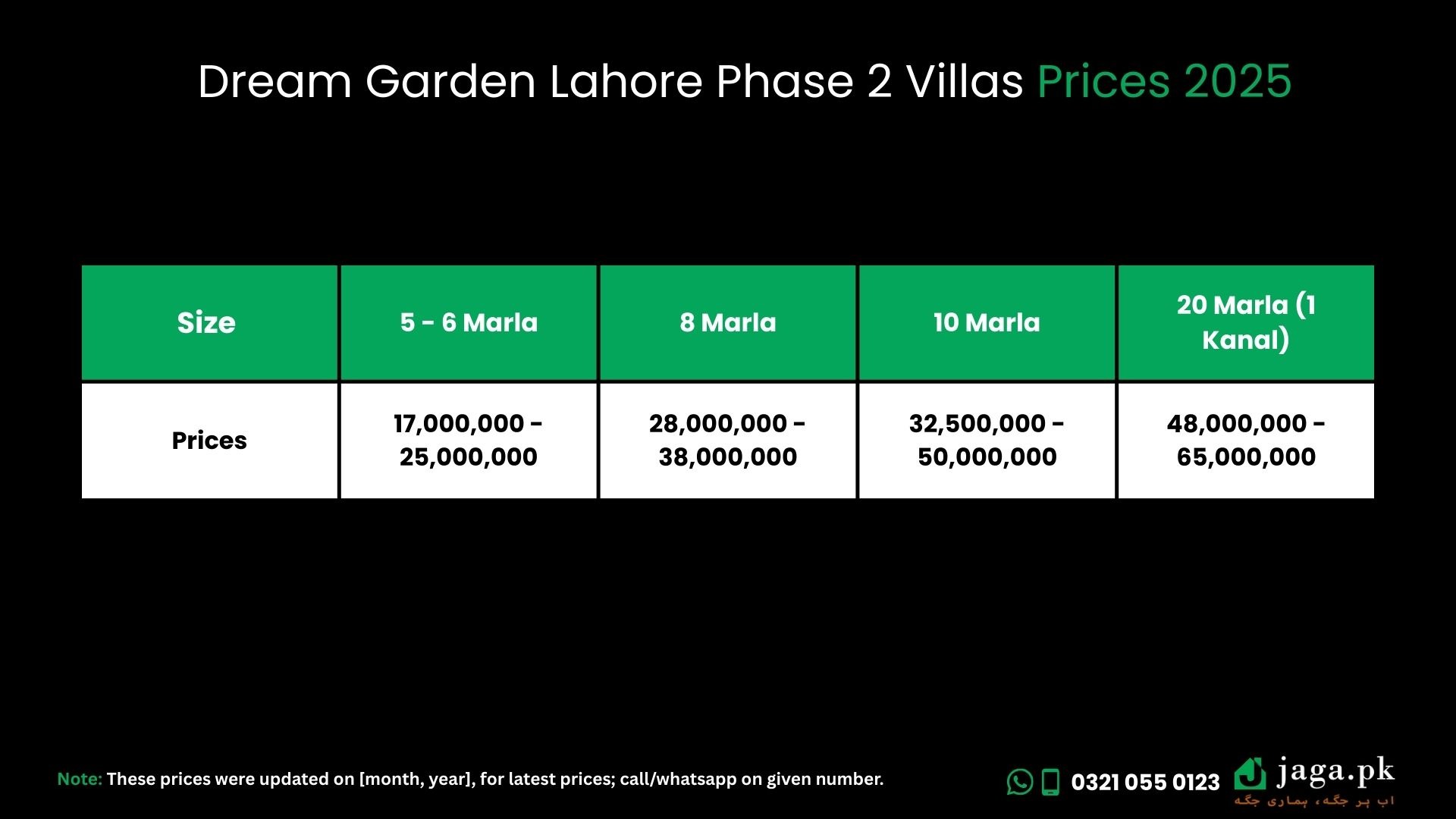 Dream Gardens Lahore Phase 2 Villas Prices 2026