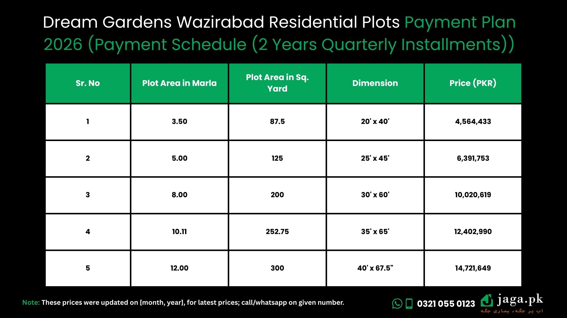 Dream Gardens Wazirabad Residential Plots Detailed Payment Schedule (2 Years)