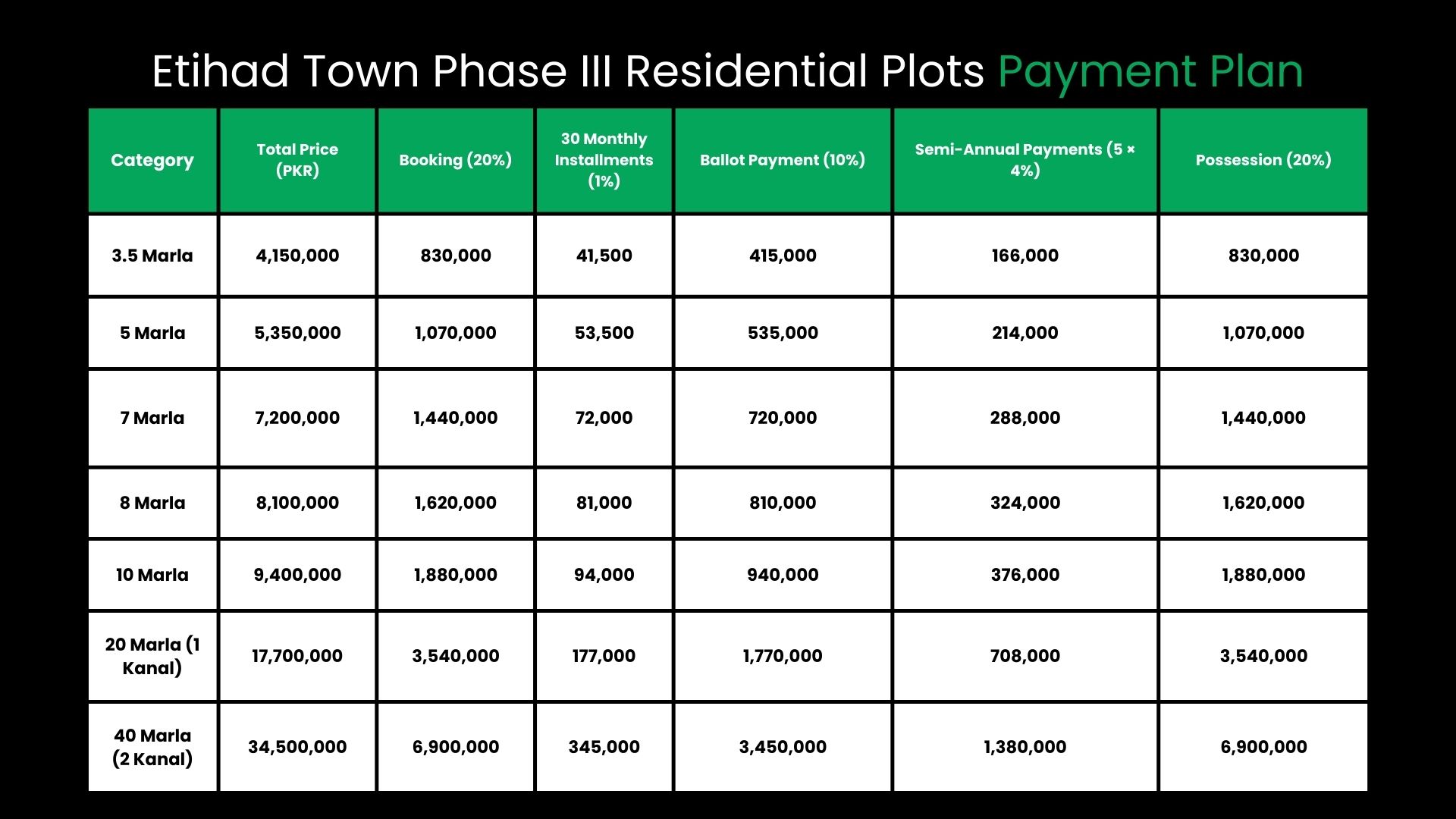 Etihad Town Phase III – Residential Plots Payment Plan (Latest Update)