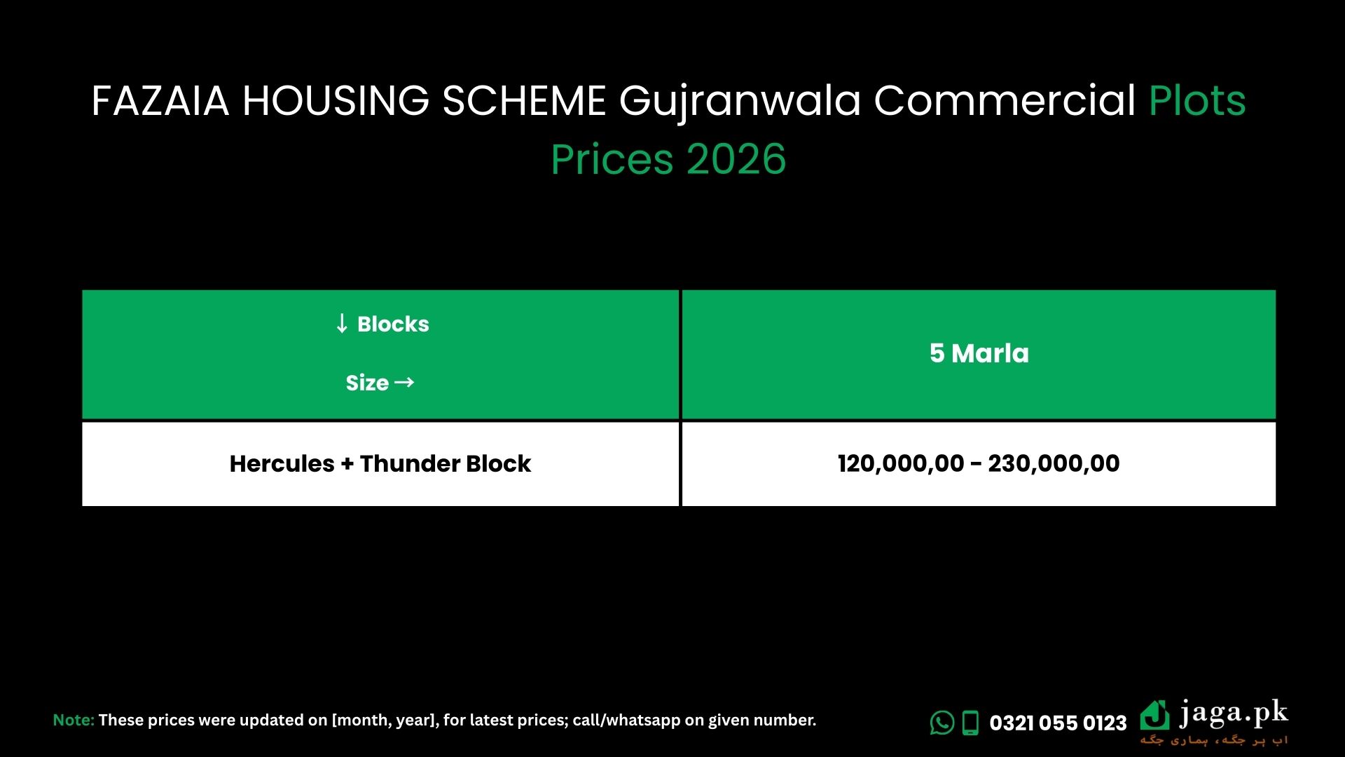 FAZAIA HOUSING SCHEME Gujranwala Commercial Plots Prices 2026
