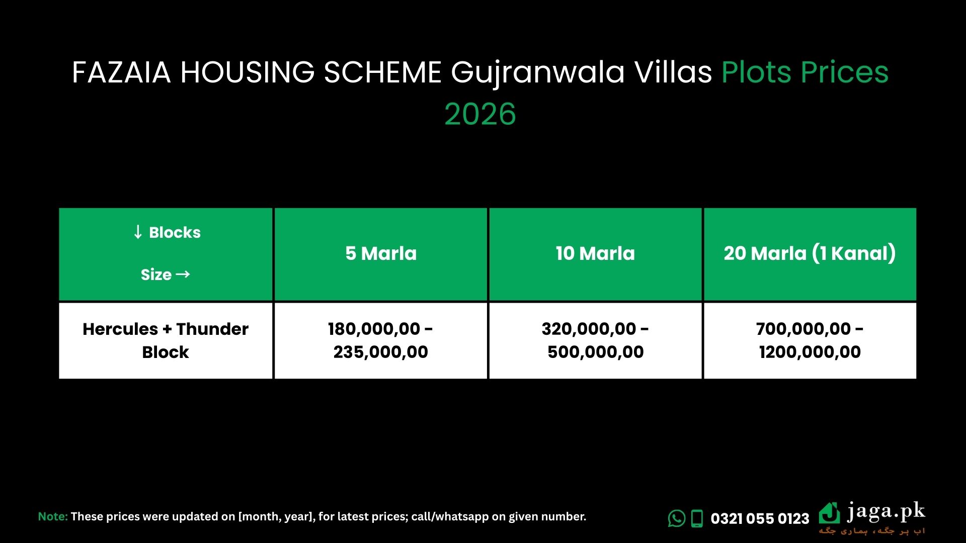 FAZAIA HOUSING SCHEME Gujranwala Villas Plots Prices 2026