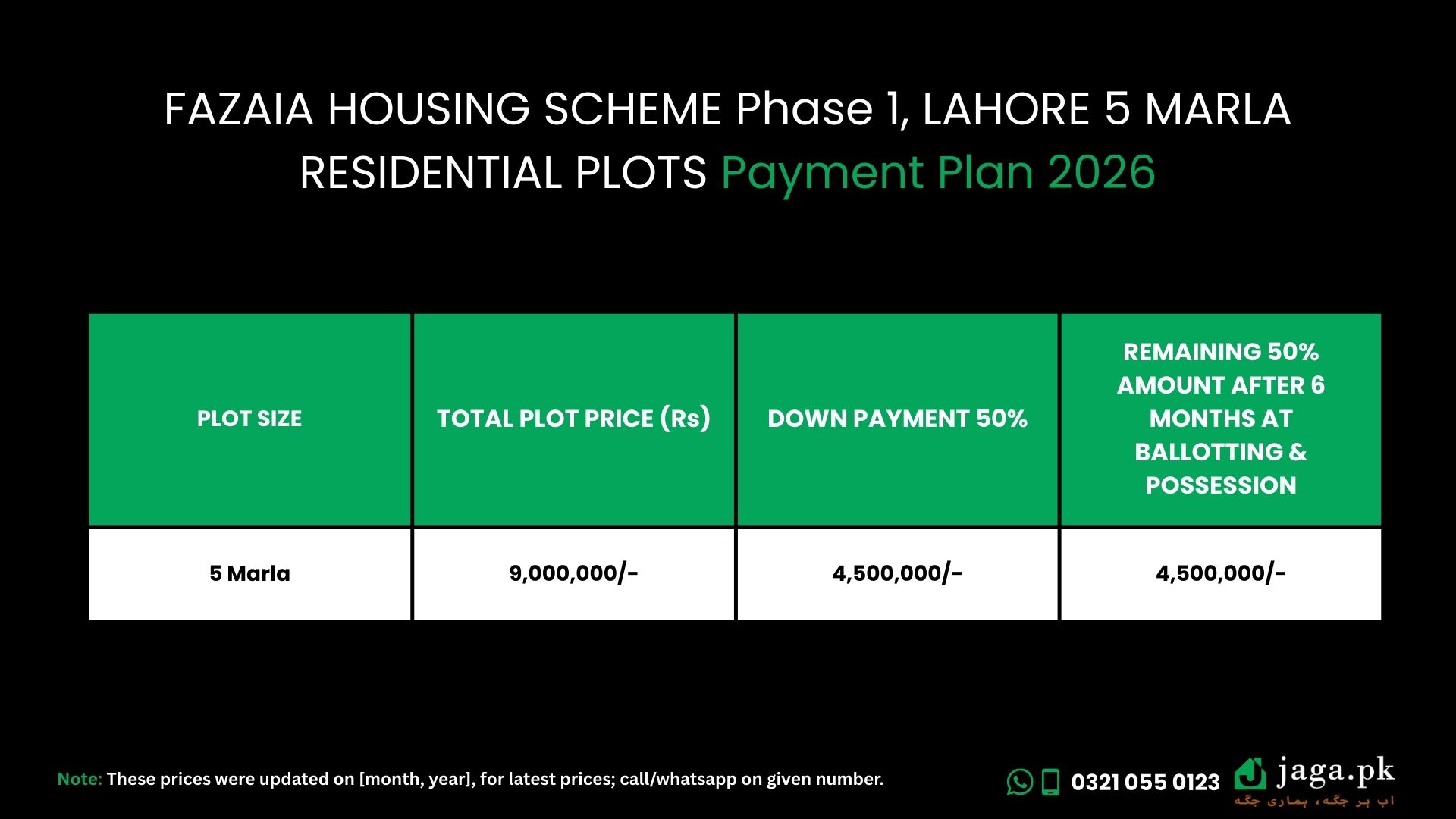 | 5 Marla | 9,000,000/- | 4,500,000/- | 4,500,000/- |