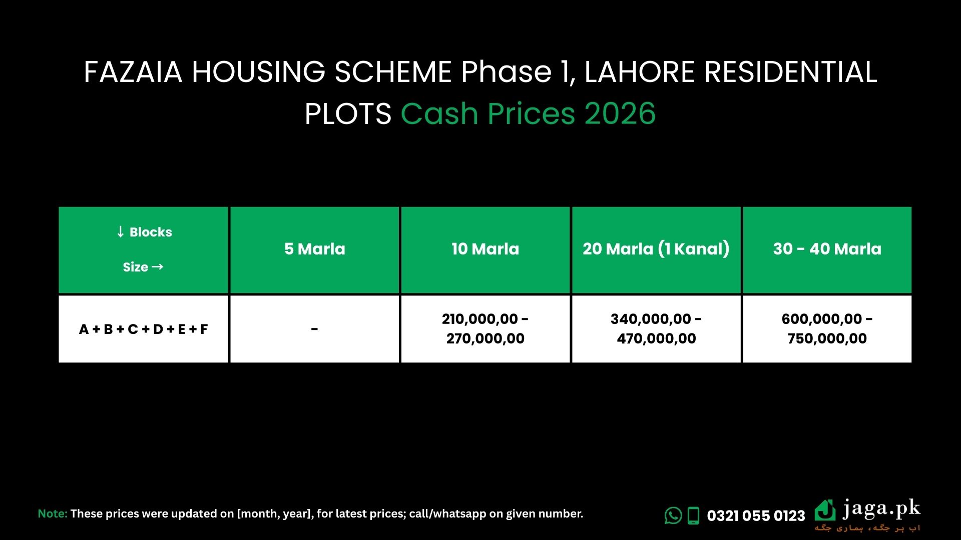 FAZAIA HOUSING SCHEME Phase 1, LAHORE Residential Plots Cash Prices 2026