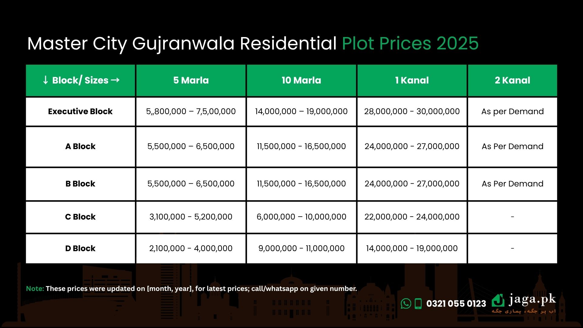 - Executive Block stands as the premium segment of Master City, offering top-tier plots ideal for luxury living. Its location, proximity to parks, and enhanced infrastructure justify the higher price bracket.