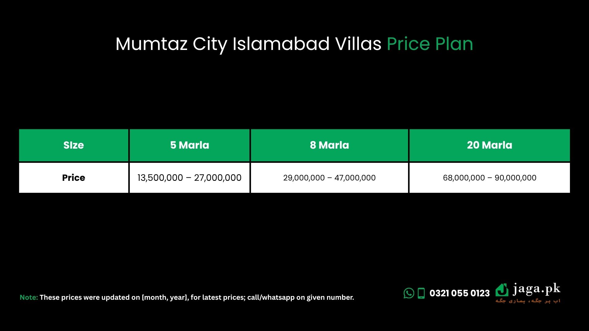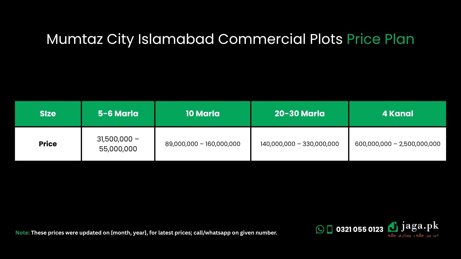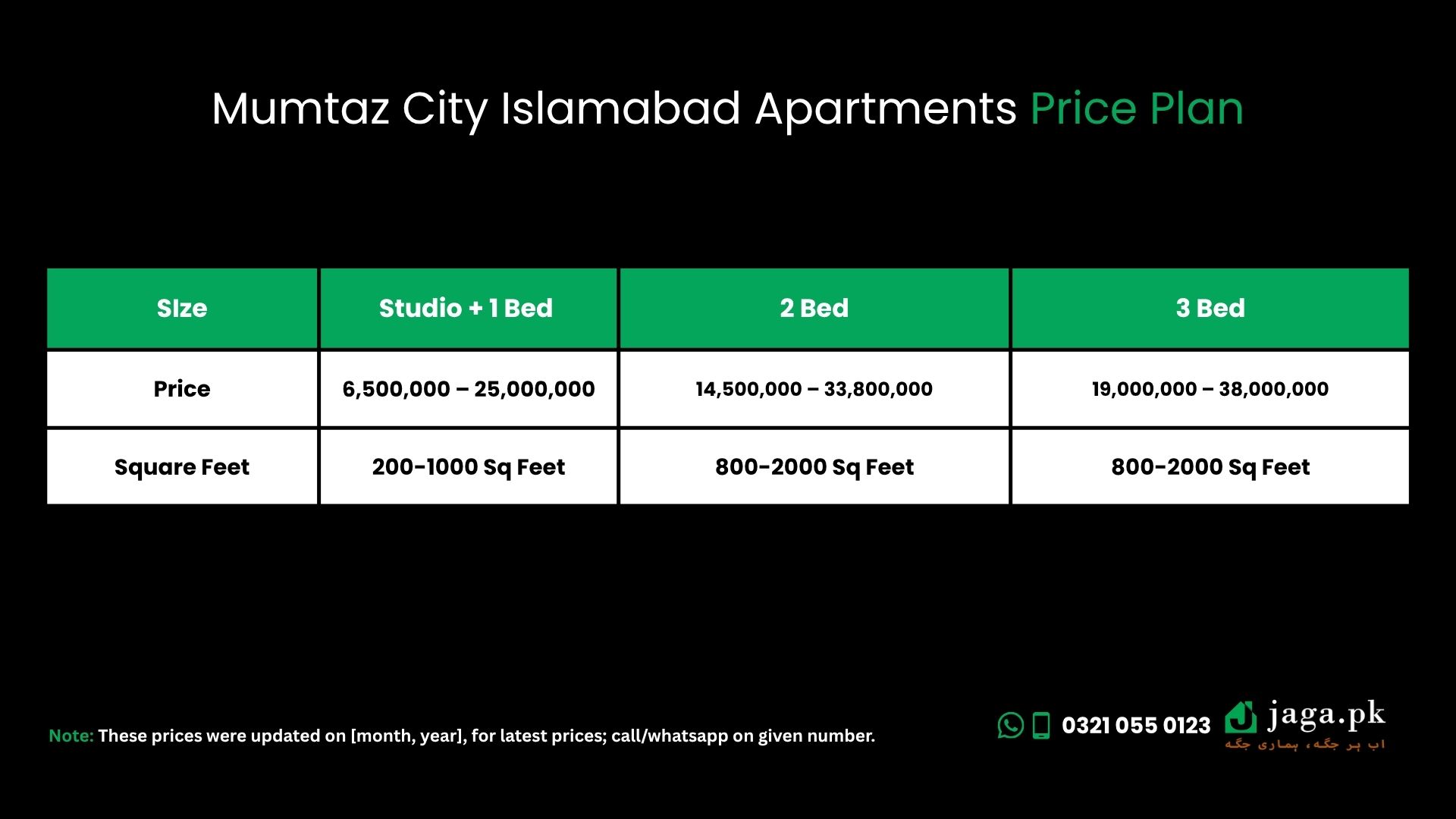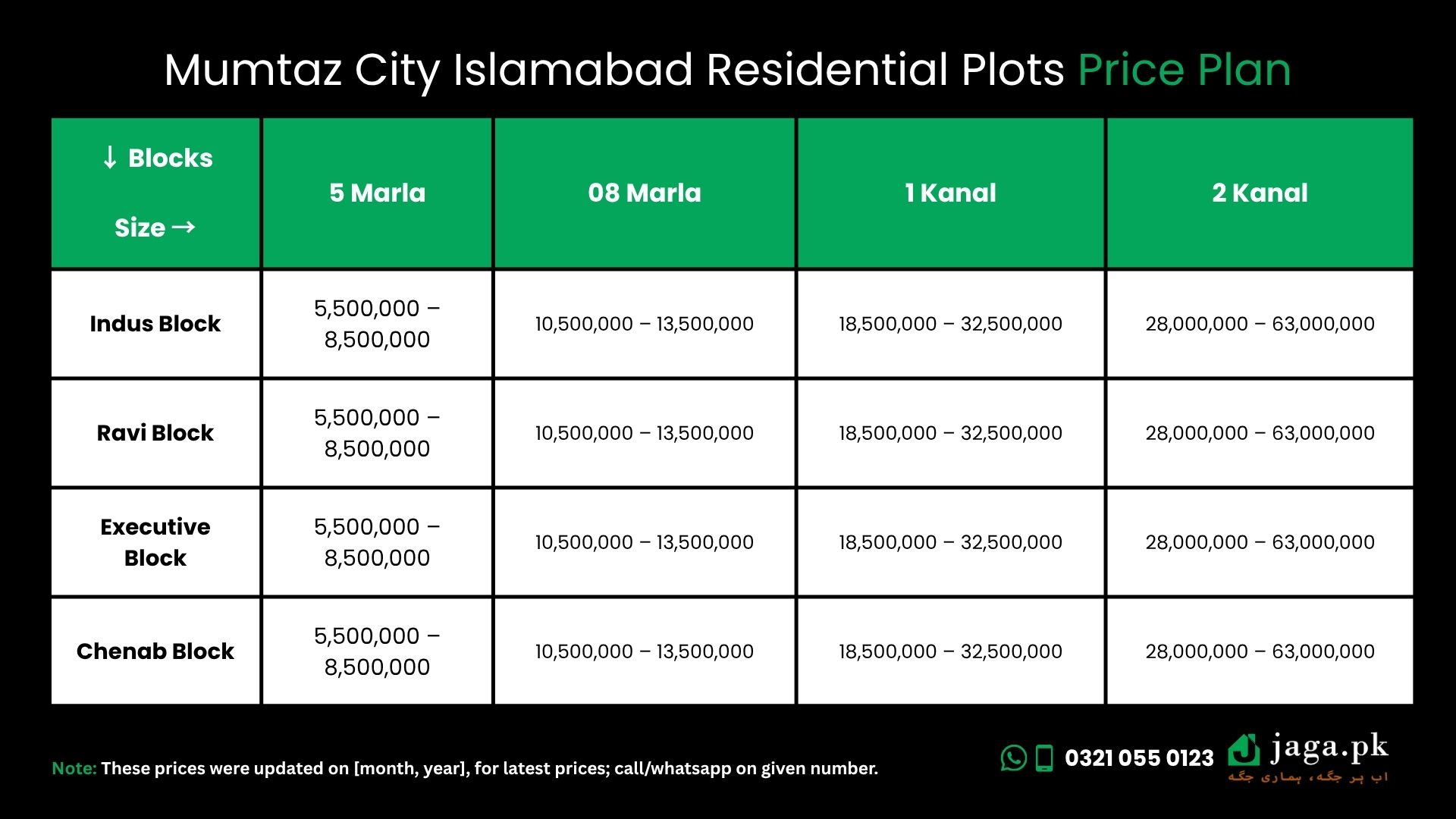 The pricing is structured to accommodate a range of budgets, making Mumtaz City an attractive option for those seeking a blend of modern living and strategic location.