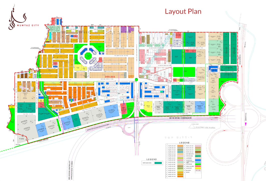The overall layout of Mumtaz City is based on modern town planning principles with an emphasis on creating a pollution-free, green environment, and efficient infrastructure.