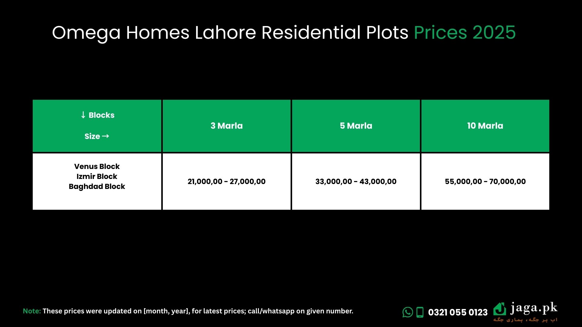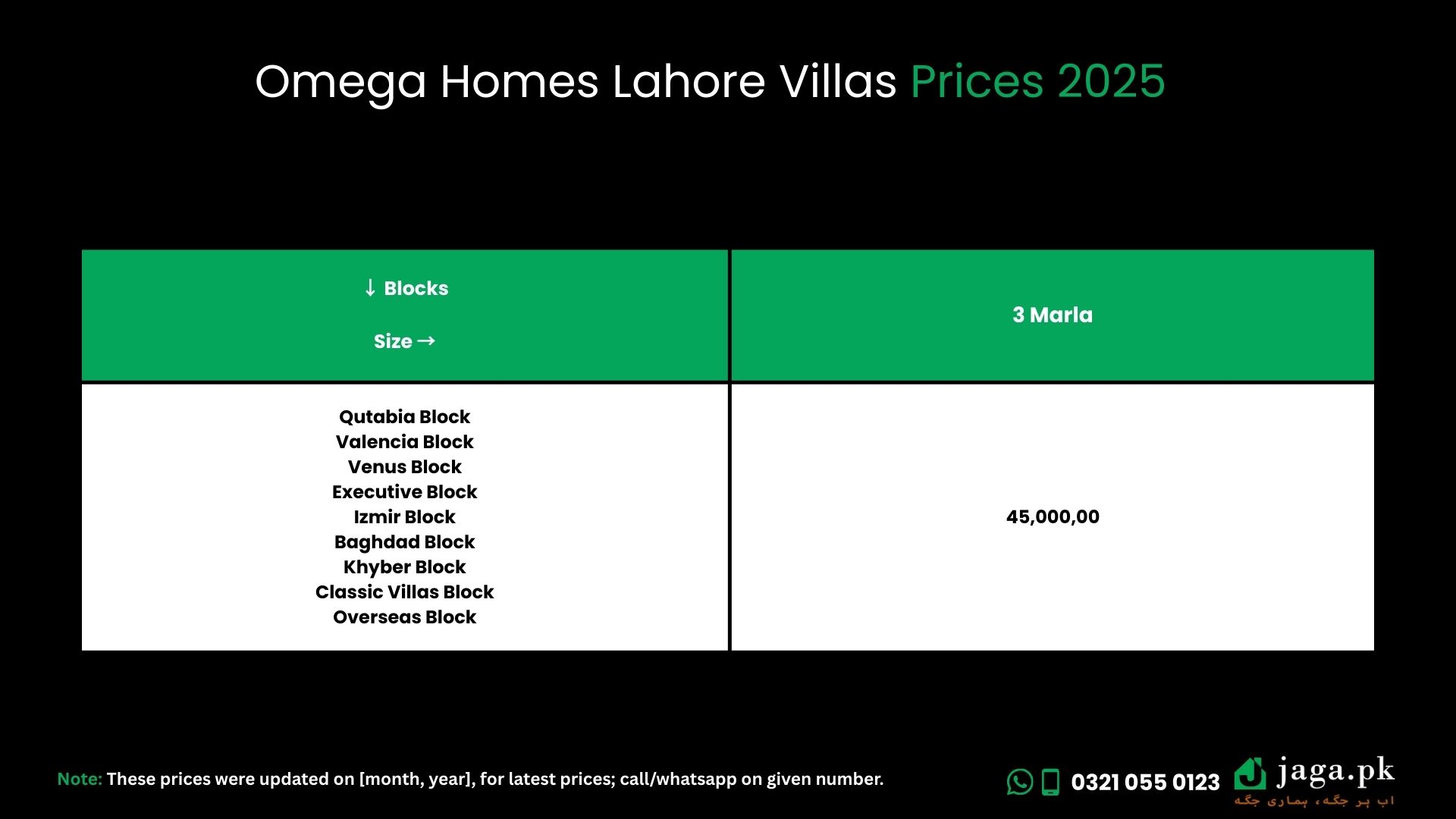 Omega Homes Lahore Villas Prices (3 Marla) 2026