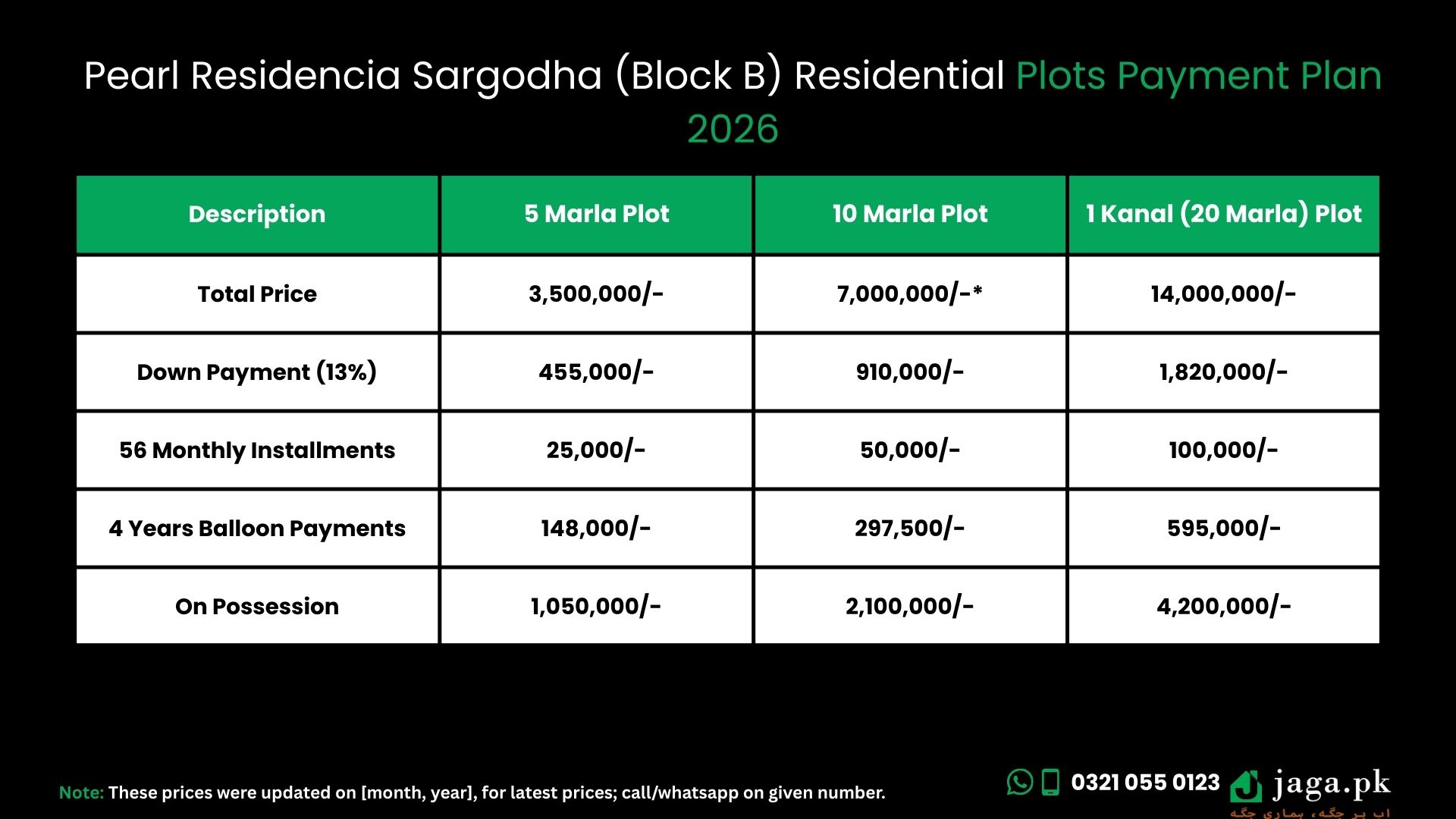 Pearl Residencia Sargodha (Block B) Residential Plots Payment Plan 2026
