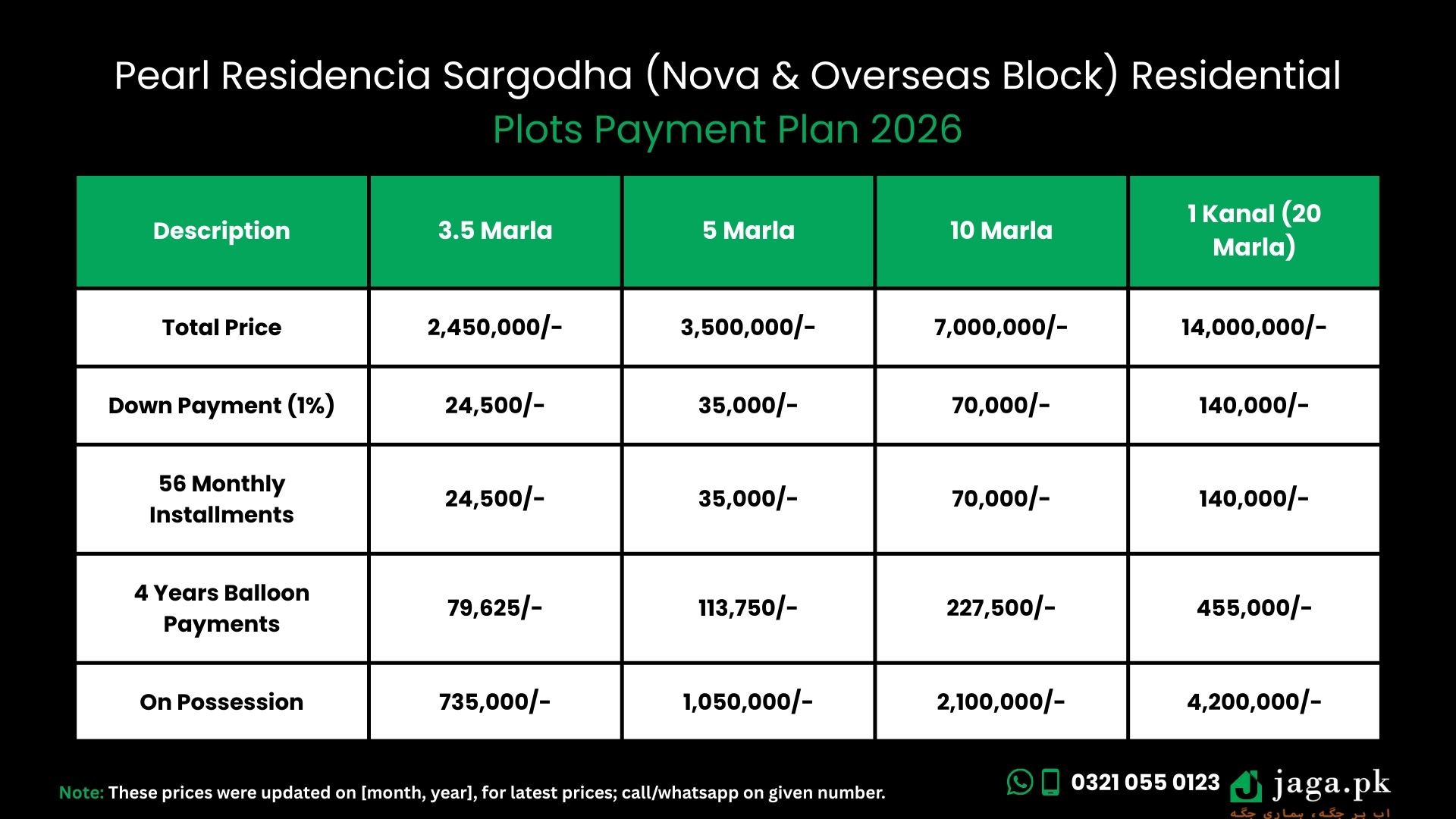 Pearl Residencia Sargodha (Nova & Overseas Block) Residential Plots Payment Plan 2026