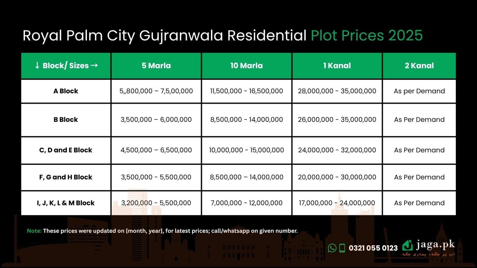 Compared to Lahore and Islamabad, Gujranwala still offers affordable residential plot prices, making it an ideal option for first-time buyers, long-term investors, and overseas Pakistanis. Major societies like Royal Palm City, DHA Gujranwala, Master City and others are offering modern amenities, strong security, and sustainable community planning.