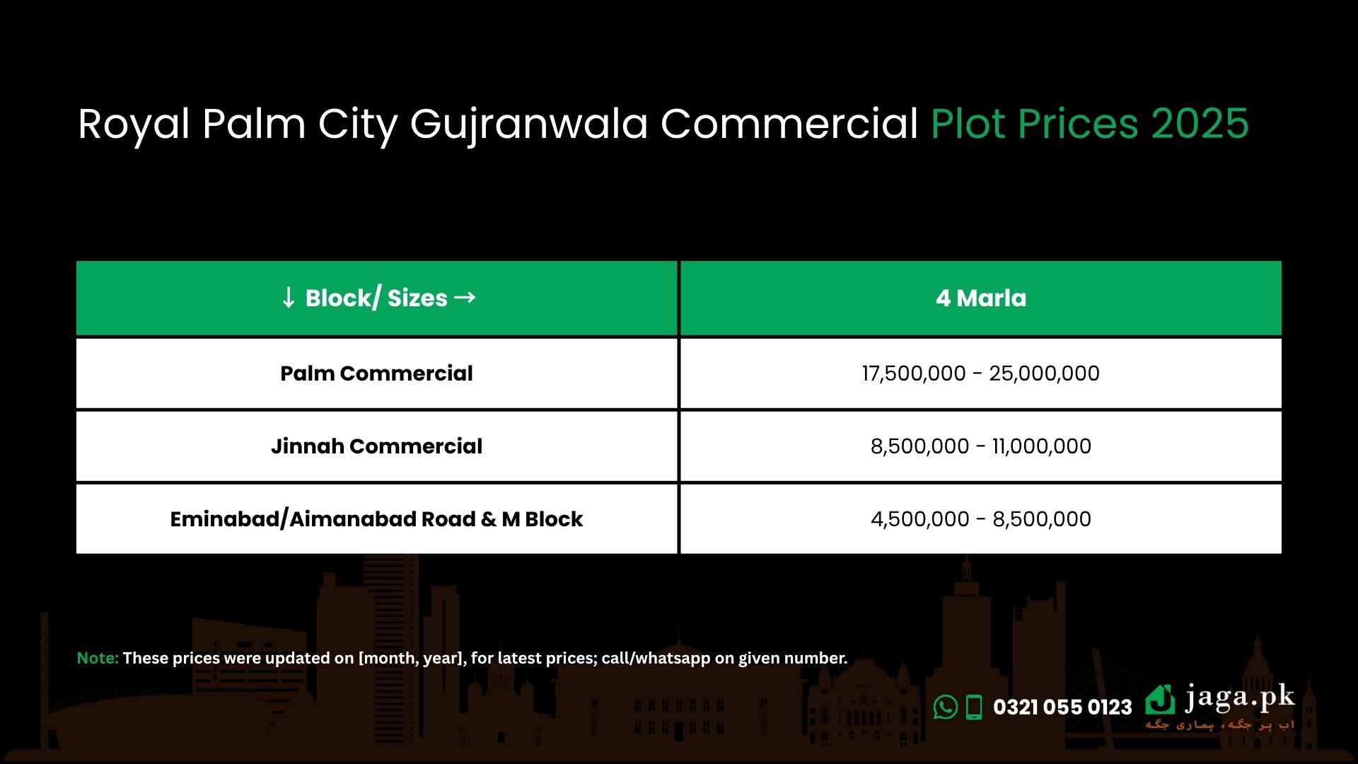 Royal Palm City Gujranwala Commercial Plot Prices (2025)
