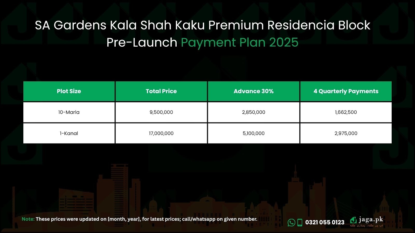 SA Gardens Kala Shah Kaku Premium Residencia Block Pre-Launch Payment Plan 2025