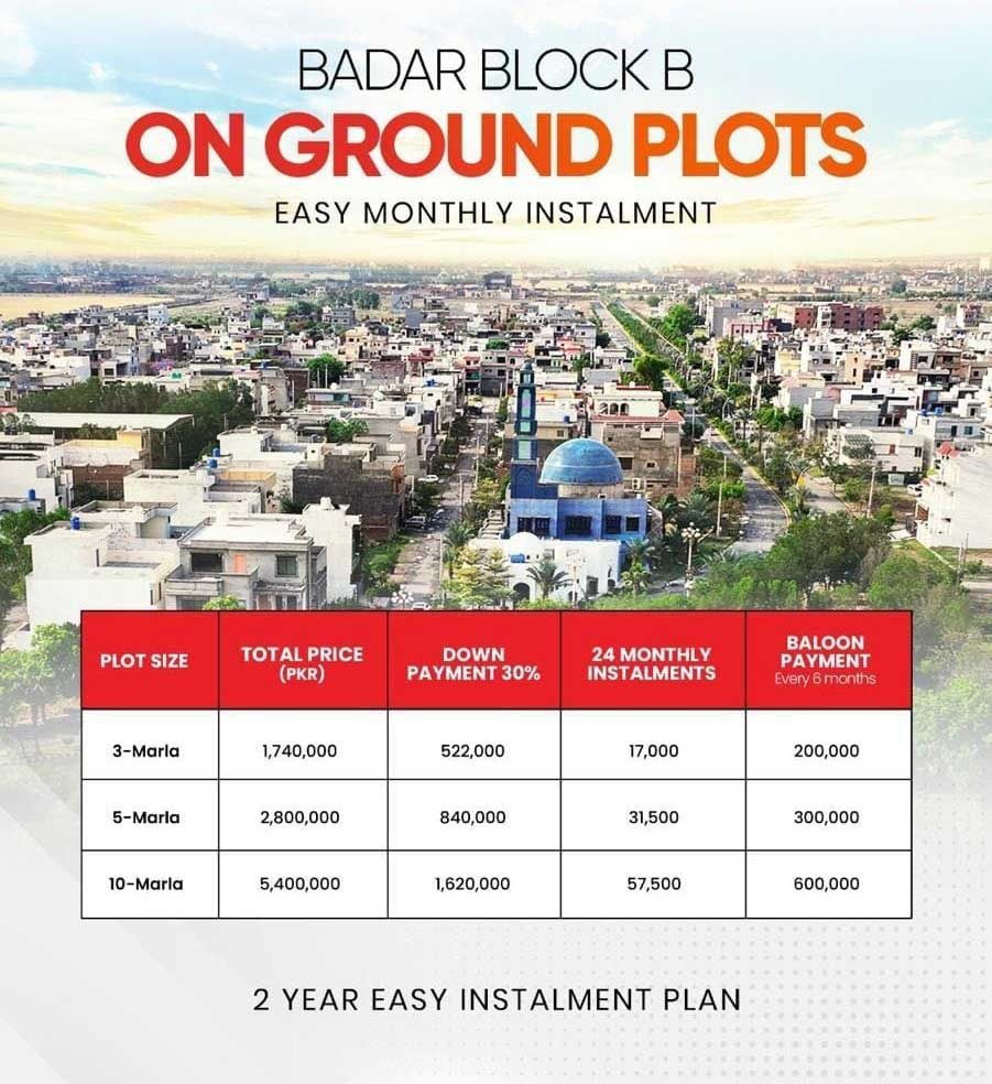 The housing venture is offering plots of 5 Marla and 10 Marla in Sector D of Badar Block with a commitment of possession in 6 months. The rates and prices of the plots available for sale are mentioned below.