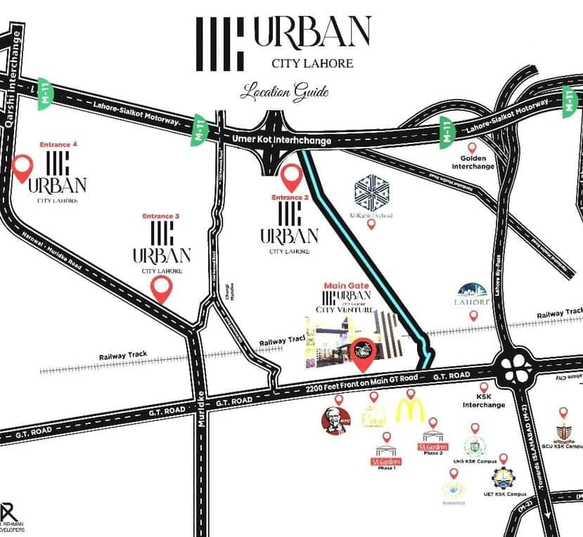 Urban City Lahore is situated on the Main GT Road, near the Kala Shah Kaku Interchange, with easy access to Lahore, Sialkot, and Islamabad.