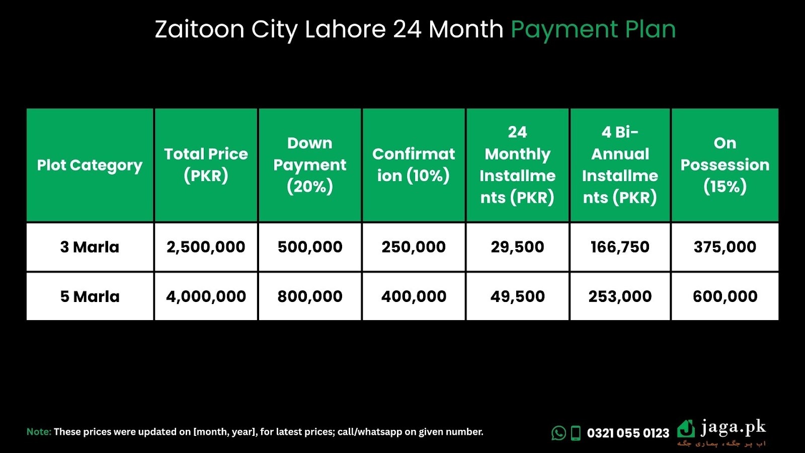 Zaitoon City Lahore Residential Plot Payment Plan (24-Month Installment Plan)